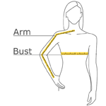 3. Measure from one side to the other - about 1" below the armhole (Line B in the diagram). This will be your garment's 1/2 chest measurement.